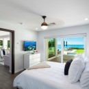 Bedroom 4: Ground floor bedroom with a queen-size bed, A/C, ceiling fan, TV, WiFi, sea view, access to terrace and en-suite bathroom with shower (outside accessible), vanity and WC. 2 guests maximum.