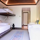 Bedroom 7: Bedroom with 4 twin bunk-style beds, for children.  A/C, Apple TV,  video game console, access to private walled garden and en-suite bathroom with shower, vanity and WC. Connected to bedroom 6. 4 children maximum