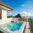 Bedroom 3: Upper floor Master bedroom with a four-poster king-size bed, A/C, Apple TV, private balcony, shared terrace with day beds, ocean view and en-suite bathroom with bathtub, shower, double vanity and WC. 2 guests maximum