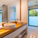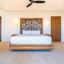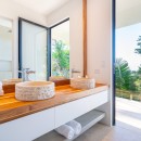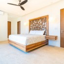Each of the four bedrooms within the villa features a luxurious floating king-size bed, convertible to twin beds if desired, along with an ensuite shower/bathroom and a private balcony offering sweeping views of the surroundings.