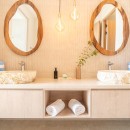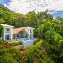 Within Casa Frenchie, you'll discover two master bedrooms boasting king-size beds and private en-suite bathrooms, each equipped with double showers and double vanities. These luxurious spaces offer ocean views, smart TVs, air conditioning, ceiling fans, and WiFi. The upper master bedroom features a balcony with a gentle evening breeze, while the lower master bedroom provides direct access to the pool terrace. In the other two guestrooms, you'll find two queen beds in each, along with smart TVs and bathrooms featuring showers and single vanities. These rooms also offer ocean views, air conditioning, ceiling fans, and WiFi, as well as access to the pool terrace. These four rooms are connected by a spacious common area, complete with a generously sized and beautifully designed open-concept kitchen, dining room, and lounge, all opening up to the pool deck, which boasts spectacular views and is surrounded by a lush tropical garden.