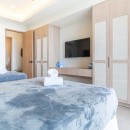 Bedroom 4: Bedroom with two queen-size beds, A/C, ceiling fan, TV, WiFi, ocean view, access to the pool terrace, bathroom with shower, vanity, and WC. 2 guests maximum.