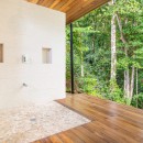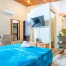 Bedroom 5: Bedroom with a queen-size bed, private entrance, smart TV, A/C, computer desk, ceiling fan, WiFi, jungle view, access to private yoga deck and en-suite bathroom with outdoor shower, single vanity, and WC. 2 guests maximum.