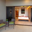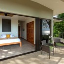 Bedroom 1: Master bedroom with king-size and single bed, A/C, ceiling fan, WiFi, sea view, access to the pool and en-suite bathroom with shower, vanity, and WC. 2 guests maximum.
