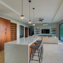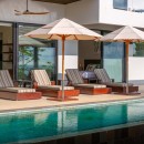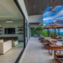 The outdoor kitchen with a BBQ provides the perfect setting for al fresco dining, allowing you to savor delicious meals while embracing the fresh jungle air. The villa's collapsible glass sliding doors effortlessly blend the indoor and outdoor spaces, creating a seamless connection with nature. The modern and well-equipped kitchen is ideal for culinary enthusiasts, while the living area beckons with inviting couches and a flat-screen TV, providing a cozy space to unwind and relax.