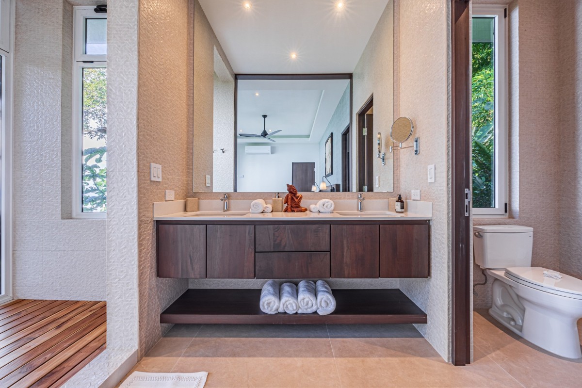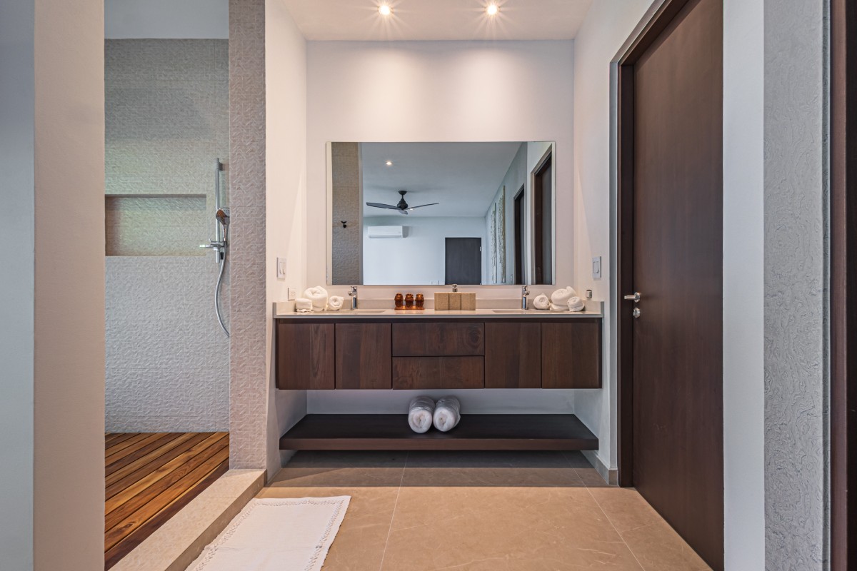 Bedroom 4: Bedroom with a king size bed (can be made as two single beds), A/C, ceiling fans, and en-suite bathroom with shower, vanity, and WC. 2 guests maximum.
