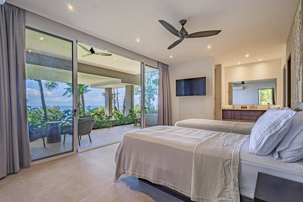 Perched like a refined luxury treehouse in the rainforest, Villa Sueño offers boutique hotel services in the privacy of a home. Every room and patio opens to sweeping 180° views of the Pacific Ocean framed by jungle canopy. Designed by an Italian interior designer, the villa blends contemporary elegance with tropical serenity, creating a seamless connection between indoor comfort and the natural world.