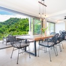 The villa's modern decor and brand-new, well-equipped kitchen with American-grade appliances ensure perfect meals for the entire group. The BBQ area, with a bar and outdoor seating, is a perfect spot to relax with a cold drink. At the pool, you'll find three pool umbrellas and two in-pool loungers, making it a great spot to enjoy the spectacular ocean and jungle views. The wild and exotic views from the common areas and bedrooms often feature sightings of toucans, monkeys, and scarlet macaws, as this area is one of the most biodiverse ecosystems on the planet.