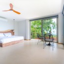 Bedroom 2: Ground floor bedroom with a queen-size bed, A/C, ceiling fan, WiFi, walk-in closet, jungle view, access to the pool terrace, en-suite bathroom with shower, vanity, and WC. 2 guests maximum.