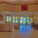 The villa's grand foyer, adorned with a captivating Tiki motif, welcomes you with chairs and plants illuminated by a skylight overhead. From here, the villa unfolds into an open floor plan, seamlessly blending the living area with mesmerizing ocean views. The elegantly appointed bedrooms, including the oceanfront Master Bedroom with direct access to the covered beachfront patio, ensure a restful retreat for all guests. With a recommended capacity of 10 to 12 guests, Villa Amor del Mar is perfect for extended families and groups.