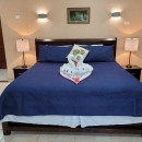 Bedroom 5: Bedroom with two queen-size beds, A/C, ceiling fans, and en-suite bathroom with shower, vanity, and WC. 2 guests maximum.
