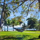 The pristine beach in front of the villa is a nesting ground for turtles, and at times, a conservation group collects their eggs, releasing the hatchlings to the sea six weeks later. Embark on beachside adventures by strolling to the nearby Tambor airport landing strip, where arriving and departing local hop flights pass just overhead, captivating adults and children alike.