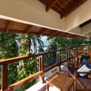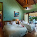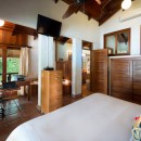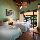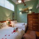 Bedroom 3: Upper floor bedroom with two queen-size beds, TV, A/C, ceiling fan, private balcony with ocean views and en-suite bathroom with bathtub/Jacuzzi, shower, vanity and WC. 2 guests maximum.