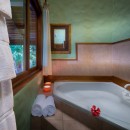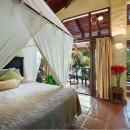 Bedroom 1: Master bedroom with a four-poster king-size bed, TV, A/C, ceiling fans, private terrace with ocean views and en-suite bathroom with bathtub/Jacuzzi, shower, vanity and WC. 2 guests maximum.