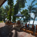 Bedroom 6: Ground floor bedroom with a king-size, TV, A/C, ceiling fan, access to oceanfront patio and shared bathroom (with bedroom 5) with shower, vanity and WC. 2 guests maximum.