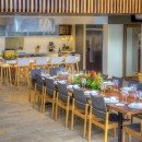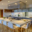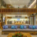 The fully-equipped kitchen is a spacious area with plenty of seating. Guests can enjoy dining inside at the breakfast bar area or the alfresco dining area to enjoy the sea breeze.