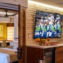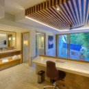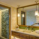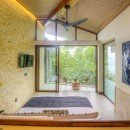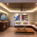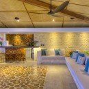 The living area is open for maximum fresh air and has ceiling fans for air circulation. Guests can enjoy drinks from the bar that is located just off the living area. Take a break in the media room or get pampered in the spa! The home has it all-- and has an elevator to easily access the multiple floors.