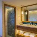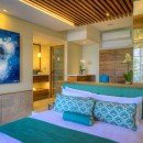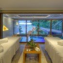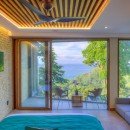 This exquisite villa has nine bedrooms and nine-and-a-half baths. All nine bedrooms have a double-size bed, a private en-suite bathroom, and a private terrace with ocean and jungle views.