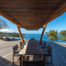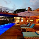 Spend hours on the sun deck, gaze admiringly at the dramatic architecture of the villa itself with its many lounging and dining niches and spots, upper and lower terraces, and innovative use of stone and wood. The interiors are a perfect reflection of the contemporary and clean styling used to create the structure. High ceilings, cool stone floors and a palette that emphasizes the neutral and reserved, it is an expansive and gracious space that encourages relaxation at every turn.