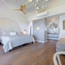 Bedroom 5 (Ciena): Bedroom with a king-size bed (can be made up as two single beds), single bed, ceiling fan, A/C, WiFi, access to the balcony, ocean views, and en-suite bathroom with shower, vanity and WC. 2 adults and 1 child maximum