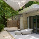 Outside, the infinity-edge pool invites you to soak up the sun, while the outdoor patio features areas for yoga, workouts, and massages. You can choose to unwind in various settings—whether inside in the air-conditioned room, on the shaded yoga deck, or in the garden, all while enjoying the ocean breeze.