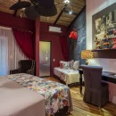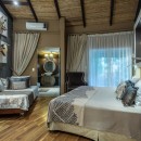 Bedroom 6(Ebony): Bedroom with a king-size bed, single bed, ceiling fan, A/C, WiFi, access to the terrace, and en-suite bathroom with shower, vanity and WC. 2 adults and 1 child maximum