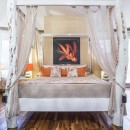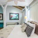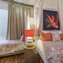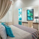 Bedroom 7(Vanille): Bedroom with a king-size bed, two single beds, ceiling fan, A/C, WiFi, and en-suite bathroom with shower, vanity and WC. 2 adults and 2 children maximum