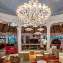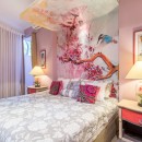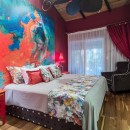 Above you, a brilliant blue sky is scattered with fluffy white clouds, illuminated by a thousand twinkling lights. As you turn in awe, you take in the grandeur around you—eight uniquely styled bedrooms, a lavish seating area resting on a vibrant hibiscus-patterned carpet, an inviting entertainment space, a stunning dining area, and a chef’s dream kitchen.
