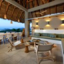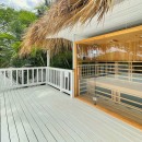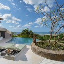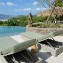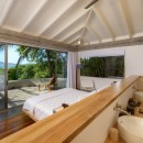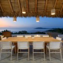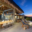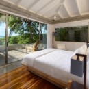 The villa’s design embraces indoor-outdoor tropical living, featuring five elegantly appointed bedrooms and an infinity pool that seamlessly blends with expansive outdoor entertaining areas. The pool's edge overflows towards the ocean, creating a striking visual effect, while the deck is equipped with comfortable lounges for soaking up the sun and savoring the views. For wellness enthusiasts, Sunset House is a paradise. It boasts a small outdoor gym, an ocean-view sauna, an ice bath, and a unique massage area suspended in the air, all with stunning ocean vistas.