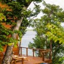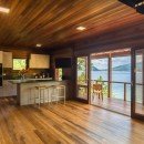 There is also a wrap around deck that serves as an outdoor living area, with al fresco dining niche and welcoming lounge space, and it presents the panoramic views in a breathtaking way. Stepping inside, visitors will marvel at the beauty of the interior design. The modern kitchen with its stainless appliances and contemporary surfaces pairs nicely with the wooden walls, floors and ceilings. The great room includes a lounge space and a set of elegant steps leads up to the bedroom.