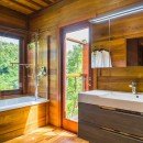 The villa, however, is more than just a good spot in a premium resort. It is set on a hill above the river and sea below and is a “green” property featuring sustainably sourced materials. And while it has lots of good looks because of this, it also features an abundance of amenities. Among visitors’ favorites is the plunge pool on the upper deck. Placing swimmers at the tree tops it is an enchanting spot at any hour.