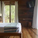 The villa itself is an open-air concept with the gourmet kitchen full of stainless-steel appliances and high-end equipment residing out on the covered deck. Emulating a great room style, it features a dining room area and lounge, too. Stepping through the oversized glass doors brings a guest to the single, stylish bedroom. A large and beautifully decorated room, it includes a platform bed, an ensuite bath, and a private terrace where fresh air can be allowed in throughout the day or night. The bathroom features an oversized plunge tub.