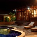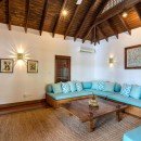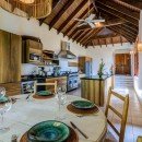 This villa features hardwood floors and high ceilings. It offers a spacious air-conditioned kitchen with top appliances set next to the breakfast room. The villa also offers several living areas for use by the group, including a media room, a dining room, and a lounge area.