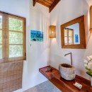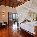 Four bedrooms are found on the east side of the property, with two on the lower floor and two on the ground floor. The final bedroom is the master, which is located on the south end of the villa. It comes with a comfortable king bed, a private balcony, and a private bathroom with a shower, whirlpool tub, and double vanity.