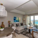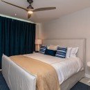 The Citrine Apartment, situated within The Point Resort at Petit Calivigny, Grenada, presents a charming two-bedroom lodging option. Positioned on the Northern Building's ground floor, this apartment offers splendid ocean vistas from every room. The generously sized living area is bathed in natural light and seamlessly integrates with an open-concept gourmet kitchen. Both bedrooms, adorned with tasteful decor, feature en-suite bathrooms, TVs, ceiling fans, and captivating ocean panoramas.