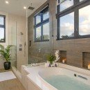 Going up a level, Villa Happy Hour has a collection of five luxury bedrooms. There is another master suite, two king bedrooms, one bedroom with two queen beds, and a bedroom with three queen beds that offers excellent views of the tennis court and gardens.