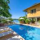 Enjoy a Mediterranean ambiance with gleaming wood flooring, upholstered cushioned furniture, flower draped balconies and louvre windows with views of a tiny fishing village and the bay waters. Open the wide living room doors to the verandah and its wet bar and TV, the perfect spot to feel cooling island breezes.