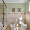 Bedroom 2: Upper floor bedroom with a king-size bed, balcony overlooking the bay and en-suite bathroom with bathtub/shower combination, bidet, vanity and WC. 2 guests maximum.