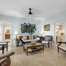 Each bedroom is equipped with air conditioning and a ceiling fan, accompanied by en-suite bathrooms. For added security, two bedrooms feature personal safes. The villa provides ample seating and dining areas, and adjacent to the pool, a cozy gazebo beckons with plush sofas, while a hammock gently sways between the beachside trees.