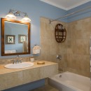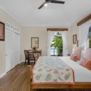 Bedroom 3: Upper floor bedroom with a king-size bed, trundle day bed, ceiling fan, A/C, WiFi, and en-suite bathroom with bathtub/shower, vanity and WC. 2 guests maximum.