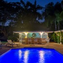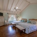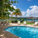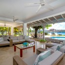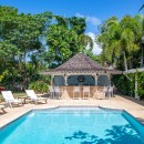 Hand-carved fretwork trimming adorns the verandah and balcony as well as the poolside gazebo bar. The living room features an open layout with French doors that open to the expansive well-furnished verandah. This lovely outdoor seating area is the true heart of the villa. Relax on comfortable cushioned seating and dine outdoors for a casual meal surrounded by nature. Guests at Villa Summer Place will have beautiful views of the lush tropical landscaping that enhances the grounds, with colorful bougainvillea, sea grapes, flowering hibiscus and coconut palms. The crystal clear waters of Discovery Bay are never far from sight. Relax at the 100-foot private beach and take out a complimentary sea kayak to explore the shoreline. Snorkel gear will introduce you to another world below the surface of the sea. Villa A Summer Place features an inviting pool and a private tennis court that is lit for night play.