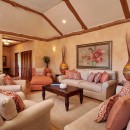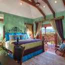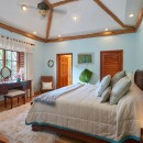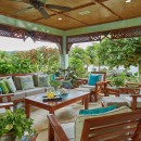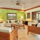 Cross the manicured lawn and take the stepping stones down to the sandy beach for a day of sun and fun in the surf where you will find complimentary kayaks and snorkel gear for your enjoyment. The interior of Villa Whispering Waters is replete with silks, original art and island colors that set the mood for a carefree tropical vacation. Lime greens, cushioned rattan furniture, bamboo ceilings and lazy fans are offset by gleaming wood and imported stone flooring. Throw open the French doors of the great room and relax on the furnished verandah outfitted with an outdoor bar and water views.