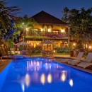 Designed to accommodate 14 guests, this outstanding villa with its own private beach is the ideal backdrop for an amazing destination wedding reception. The centerpiece of the outdoor area is an impressive waterfall pool and adjoining Jacuzzi hot tub surrounded by a pool deck and lush tropical landscaping. Welcome the day with breakfast outdoors in the thatch roof gazebo overlooking crystalline bay waters, or dine with friends at the long dining tables indoors and out. Upon request, the staff will prepare a magical torch lit beach party of fresh caught fish, lobster and chicken grilled to perfection.