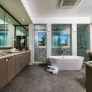 The ground floor of the villa has a single bedroom that features a king bed, a terrace, air conditioning, and a private safe. There is also a television and an ensuite bathroom with a vanity and an outdoor shower. The other four bedrooms are located on the upper floor and most have a terrace and television for guest entertainment. All of the bedrooms have their own private bathroom for extra guest convenience.