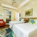 Two of the bedrooms are considered master bedrooms and come with a host of extra amenities for guests. These rooms include pullout sofa beds, balconies with views of the lagoon, and spacious bathrooms with double vanities. There are also two bedrooms that connect, making them an ideal choice for a family with children.