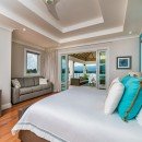 Bedroom 1: Upper floor Master bedroom with a king-size bed, pull-out sofa bed, balcony with lagoon view, A/C, ceiling fan, TV, safe, walk-in closet and en-suite bathroom with bathtub, shower, double vanity and wc. 2 guests maximum