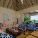 All six bedrooms have HD cable television, air conditioning, closet safes, ceiling fans and Travertine marble en-suite bathrooms. The four bedrooms upstairs open to private furnished balconies and lovely sea views from both bedroom and bathroom. The two bedrooms downstairs open to furnished terraces, gardens and soft lawn.