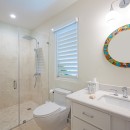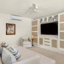 Please note that the media room with an oversized day bed (which can be converted into a queen-size bed for up to two person), a TV, a desk, and an en suite bathroom with a single vanity, a walk-in rain shower, and a WC. Please note this extra sitting room/bedroom does not have full closets and is not comparable to the other 3 bedrooms in the villa.