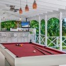 Enter the Great River gated community and find a magnificent home with an large heated infinity pool and a whirlpool Jacuzzi. Take advantage of onsite recreation with a games room, a basketball hoop, table tennis, and billiards, along with a childrens playground with swings and a 15-foot slide. There is also a 70-inch flat screen cable TV, and a CD and DVD player. Villa Allamanda features spacious and airy rooms set along a long, wide covered verandah, so the outdoors is never more than a few steps away. Relax at the stylish outdoor wood bar and enjoy comfortable seating areas overlooking the pool. The indoor great room is furnished with white sofas accented with throw pillows in upbeat island colors, and the dining table seats all twelve guests comfortably. Even indoors, you are never far from the charms of the island, with a huge wall open to the verandah outside.