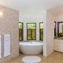 Bedroom 1: Master bedroom with a king-size bed, cable TV, A/C, ceiling fan and en-suite bathroom with walk-in shower, bathtub Jacuzzi, outdoor shower, vanity and WC. 2 guests maximum.